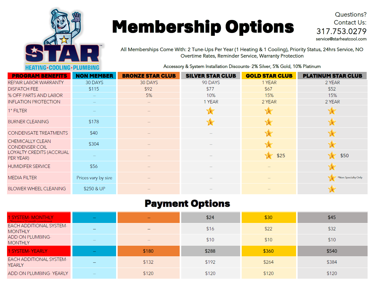 At Star Heating & Cooling, we know that a well-maintained home is a comfortable home. That’s why we’ve created our exclusive membership program – to give homeowners in Fishers, IN, an easy way to keep their HVAC systems running smoothly all year long. With seasonal maintenance, priority service, and exclusive discounts, our membership plans take the stress out of home comfort so you can relax and enjoy every season.